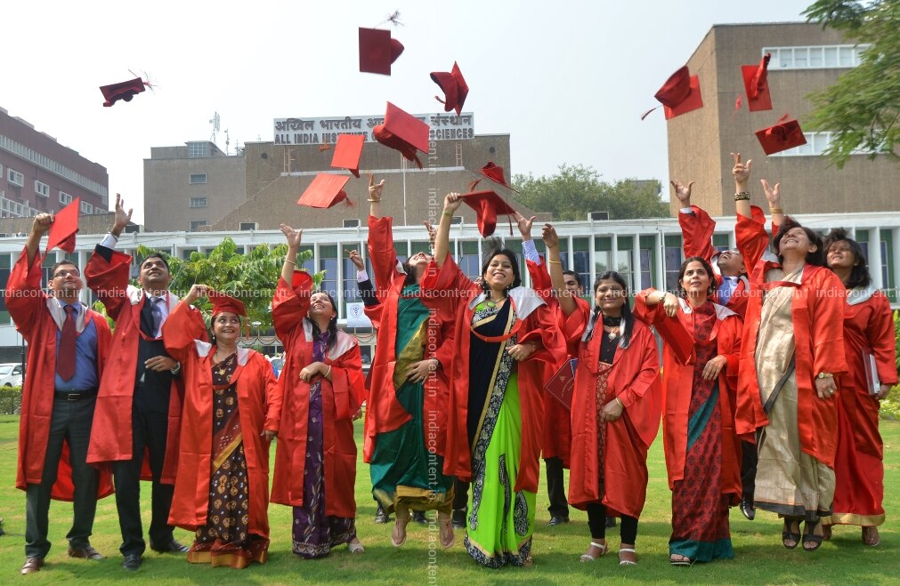 NEW DELHI INDIA OCTOBER 16 Students jubilate AFTER receiving degree AND citations AFTER the 43rd Annual Convocation of AIIMS IN NEW Delhi.Photo BY K.Asif India Today GROUP