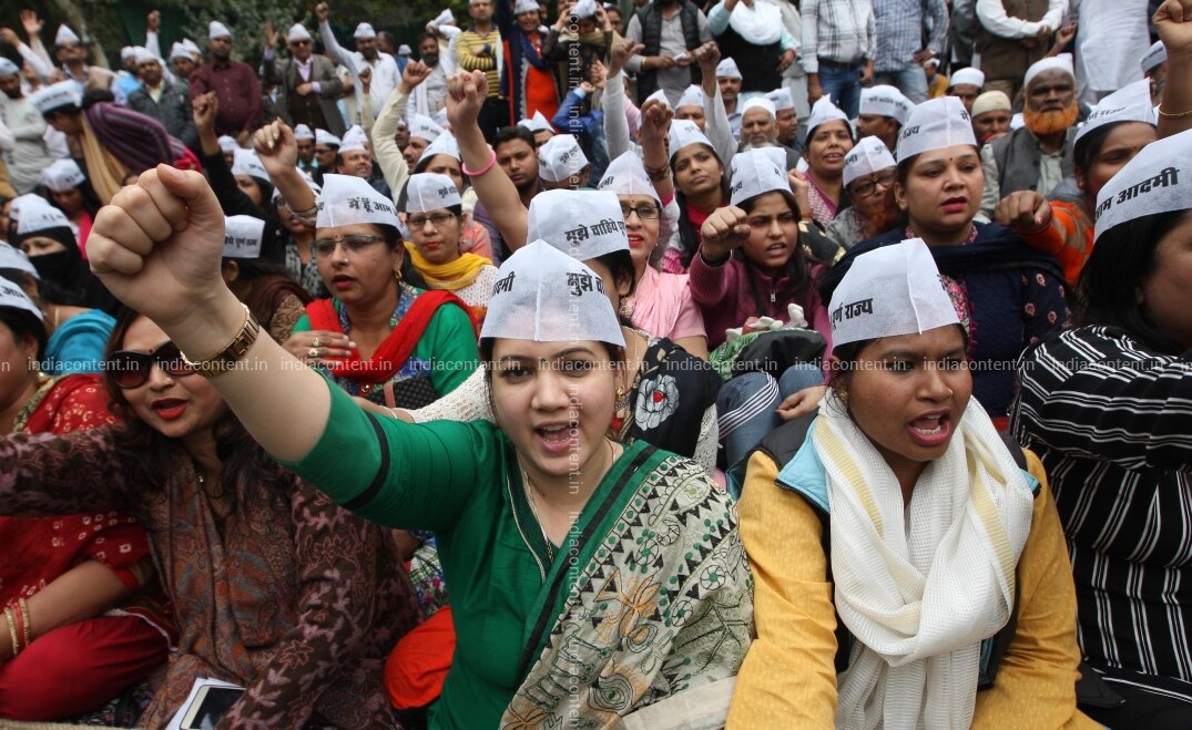 Buy AAP Party Supporters at a rally Pictures, Images, Photos By Qamar Sibtain - News pictures