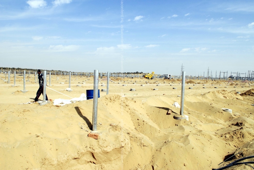 Buy Aerial view of Solar Energy Plant at Askandra Village in Nachna Tehsil Jaisalmer District Rajasthan Pictures, Images, Photos By Purushottam Diwakar - News pictures