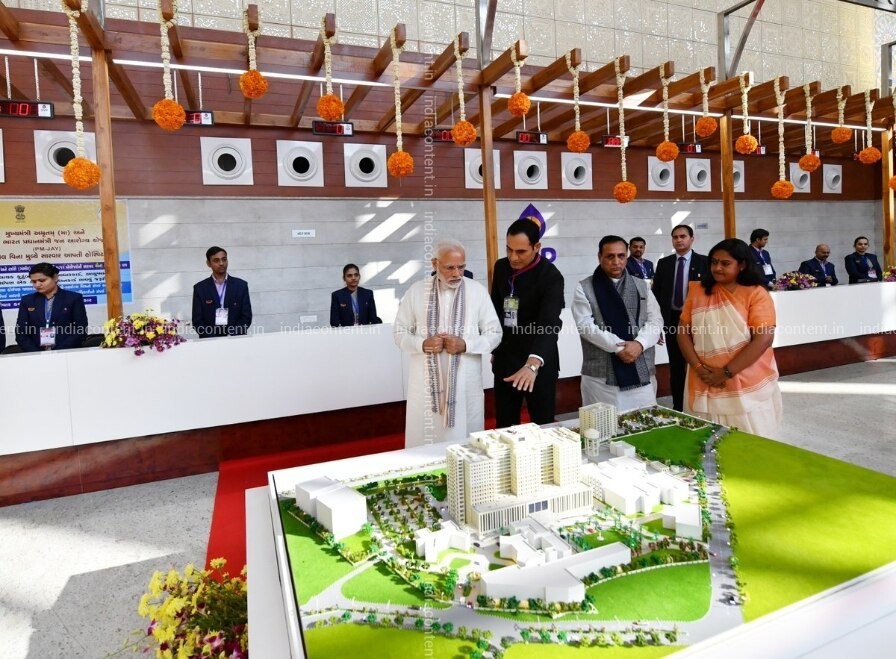 Ahmedabad Prime Minister Narendra Modi inspects the facilities at Sardar Vallabhbhai Patel Hospital after its inauguration in Ahmedabad on Jan 17 2019. Photo IANS PIB