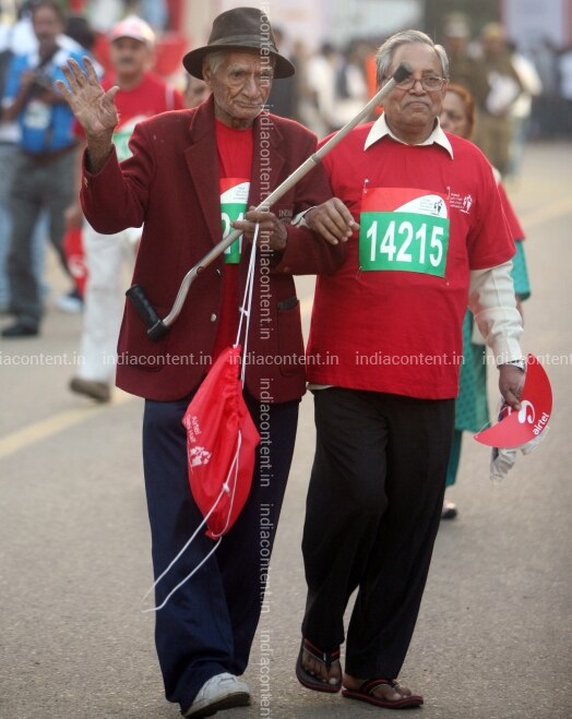 NEW DELHI INDIA NOVEMBER 21 Senior citizens participated in Airtel Delhi Half Marathon on Sunday November 21 2010. Photo by Qamar Sibtain India Today Group
