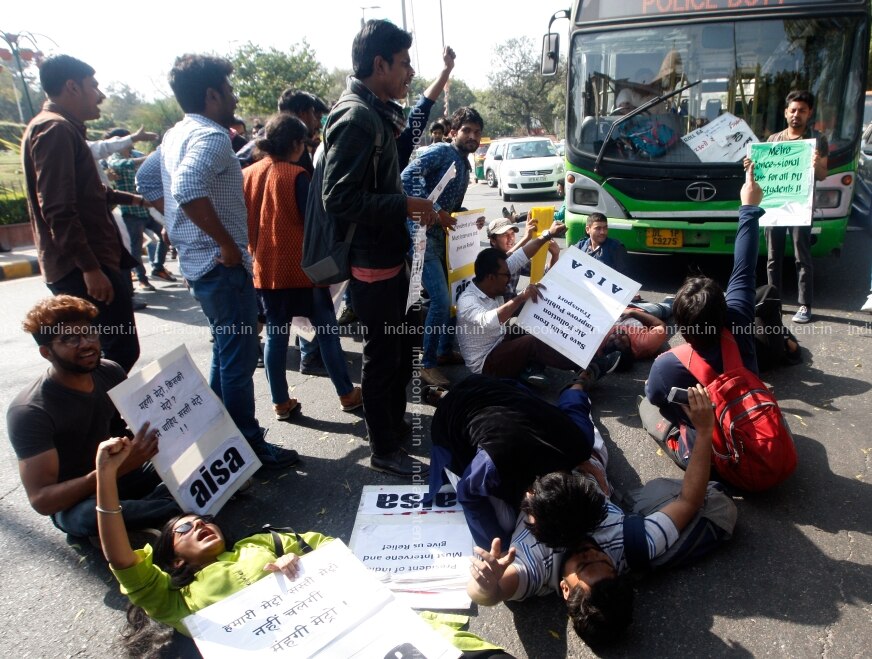 NEW DELHI INDIA FEBRUARY 27 ALL India Students Association AISA during a protest AGAINST Delhi Metro Fare Hike IN NEW Delhi. Photo BY Qamar Sibtain India Today GROUP