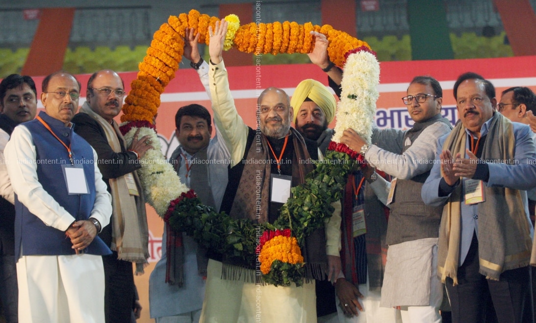 NEW DELHI INDIA DECEMBER 23 President of BJP Amit Shah with other political leaders during BJP Booth Sameelan in New Delhi. Photo by Qamar Sibtain India Today Group Amit Shah