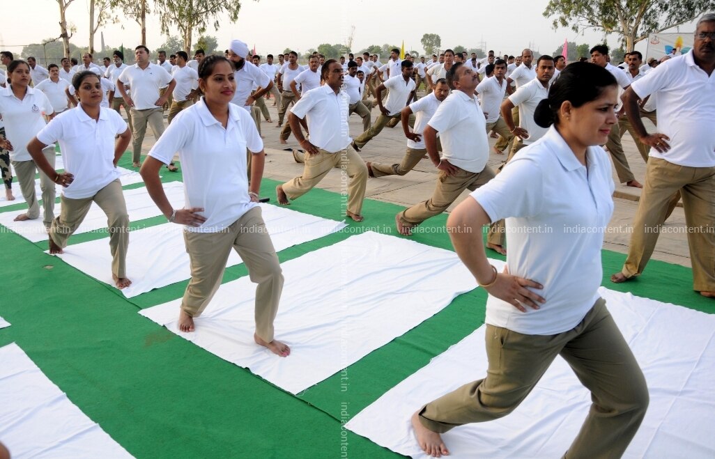 Amritsar BSF personnel practice yoga 'asanas' postures on the Fourth International Yoga Day in Amritsar on June 21 2018. Photo IANS