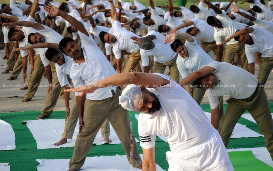 Amritsar BSF personnel practice yoga 'asanas' postures on the Fourth International Yoga Day in Amritsar on June 21 2018. Photo IANS