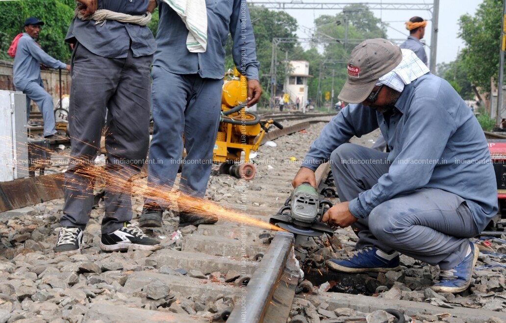 Amritsar Laborers changeover railway tracks to an electronic interlocking system instead of traditional levers in Amritsar on July 19 2018. Photo IANS