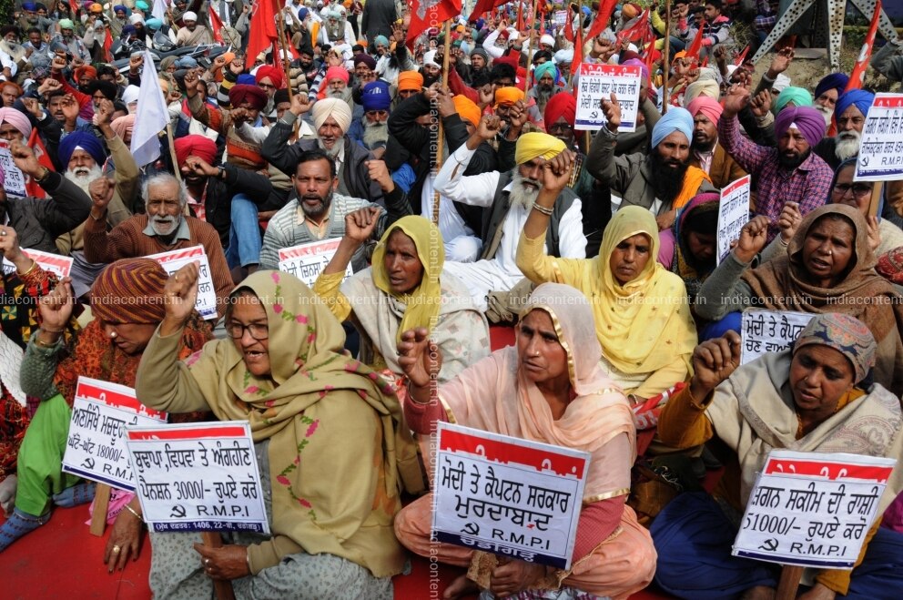 Amritsar Revolutionary Marxist Party of India RMPI activists stage a sit in demonstration to press for their various demands in Amritsar on Feb 5 2019. Photo IANS