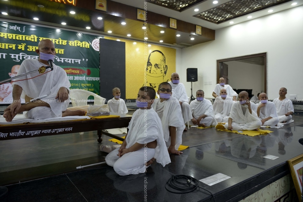 The oath taking programme Anuvrat was organised by Archarya Tulsi Birth Centenary Committee at Adhyatmik Sadhna Kendra. Scores of school students on Wednesday took pledge to abstain from alcohol tobacco and all types of drugs during a programme held in the Mehrauli area in New Delhi India on monday sept 1 2014.Photo by M Zhazo