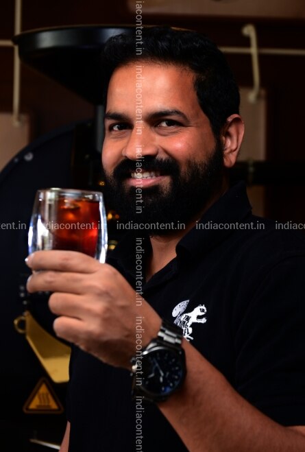 Ashis D' Abreo founder partner of Flying Squirrel Micro Roastery & cafe at his outlet in Bangalore, Karnataka, India.