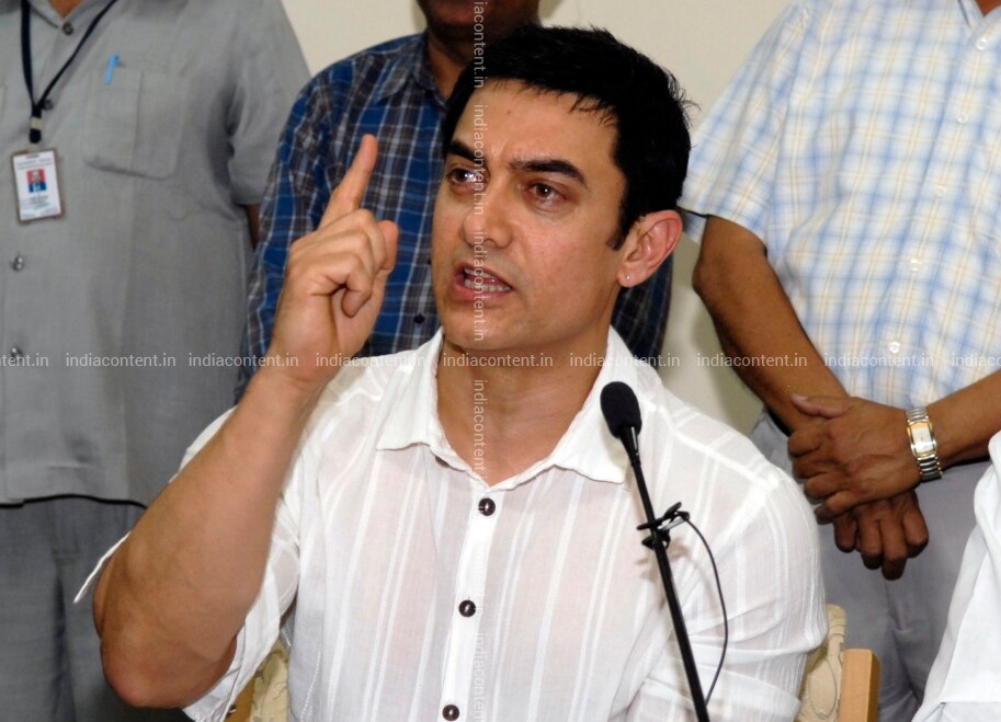 JAIPUR INDIA MAY 09 Rajasthan Chief Minister Ashok Gehlot assured actor Aamir Khan whose TV show Satyamev Jayate on female foeticide has created a storm that he will take up the issue of a fast track court with the state chief justice so that justice was expedited. The actor met Rajasthan Chief Minister Ashok Gehlot in connection with female foeticide cases on Wednesday May 9 2012. Photo by Purushottam Diwakar India Today Group Aamir Khan