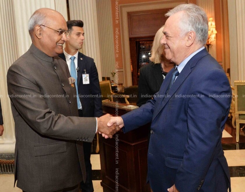 Athens President Ram Nath Kovind meets the Hellenic Republic Deputy Prime Minister Yannis Dragasakis during the India Greek Business Forum Meeting in Athens Greece on June 19 2018. Photo IANS PIB