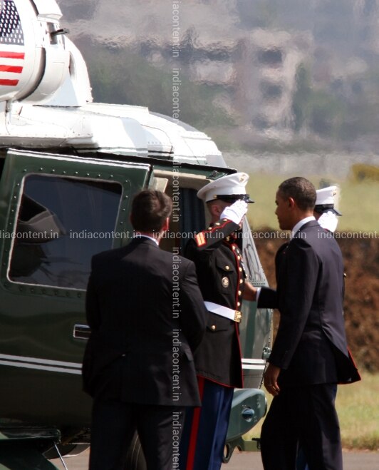 Barack H Obama 44th President of the United States of America USA with others at Airport Mumbai Maharashtra India. Barack Obama United States of America