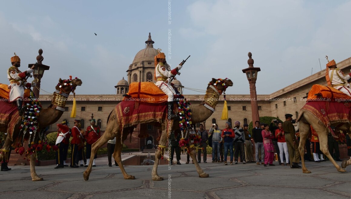 NEW DELHI, INDIA-JANUARY 27: Beating Retreat Rehearsal at Vijay Chowk, in New Delhi. Photo by Chandradeep Kumar India Today Group