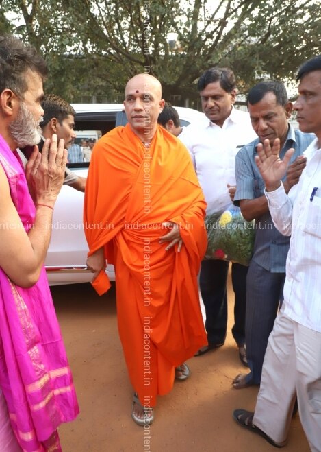Bengaluru Adichunchanagiri Seer Sri Nirmalananda Swamiji arrives at National College Grounds to pay his last respect to Hindu pontiff Vishwesha Tirtha Swami of Pejawar Mutt who passed away at a private hospital in Udupi his remains were bought to National College Grounds for public viewing in Bengaluru on Dec 29 2019. Photo IANS