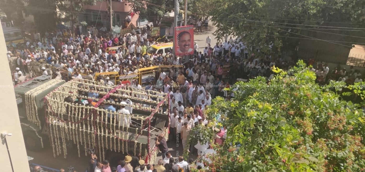 Bengaluru BJP leaders workers and supporters gather outside the party office to participate in the funeral procession of Union Parliamentary Affairs Minister Ananth Kumar who passed away at a private hospital due to multiple organ failure in Bengaluru on Nov 13 2018. Photo IANS