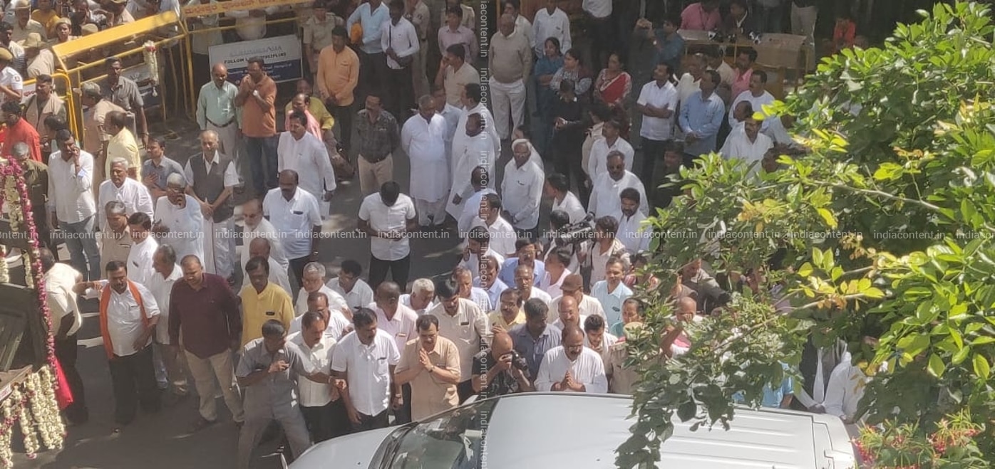 Bengaluru BJP leaders workers and supporters gather outside the party office to participate in the funeral procession of Union Parliamentary Affairs Minister Ananth Kumar who passed away at a private hospital due to multiple organ failure in Bengaluru on Nov 13 2018. Photo IANS
