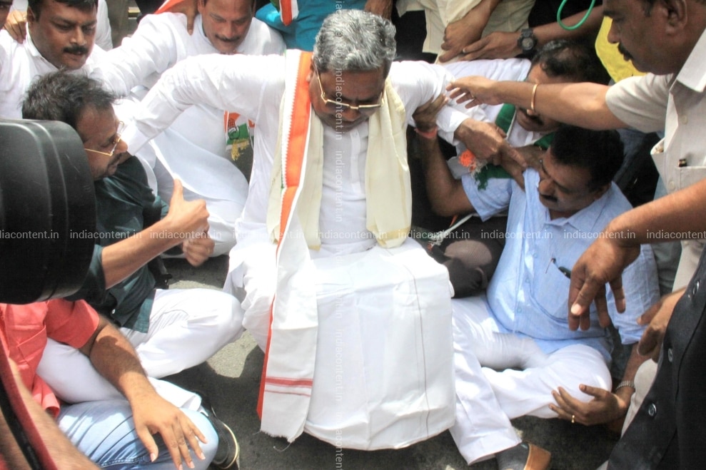 Buy Bengaluru Congress leader Siddaramaiah during a protest rally organised by Congress and JD S against the alleged attempts by the BJP and the Centre to topple the 13 month old Congress JD S coalition government in Karnataka in Bengaluru on July 10 Pictures, Images, Photos By IANS - News pictures