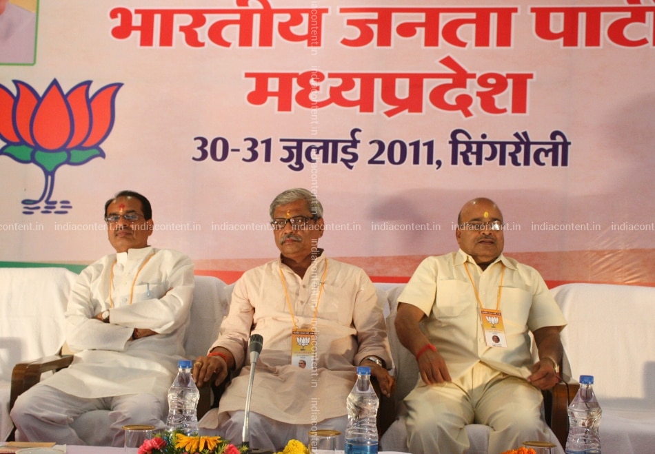 Shivraj Singh Chauhan Chief Minister of Madhya Pradesh with other Leaders at Bharatiya Janata Party BJP state executive committee meeting in Singrauli Madhya Pradesh India