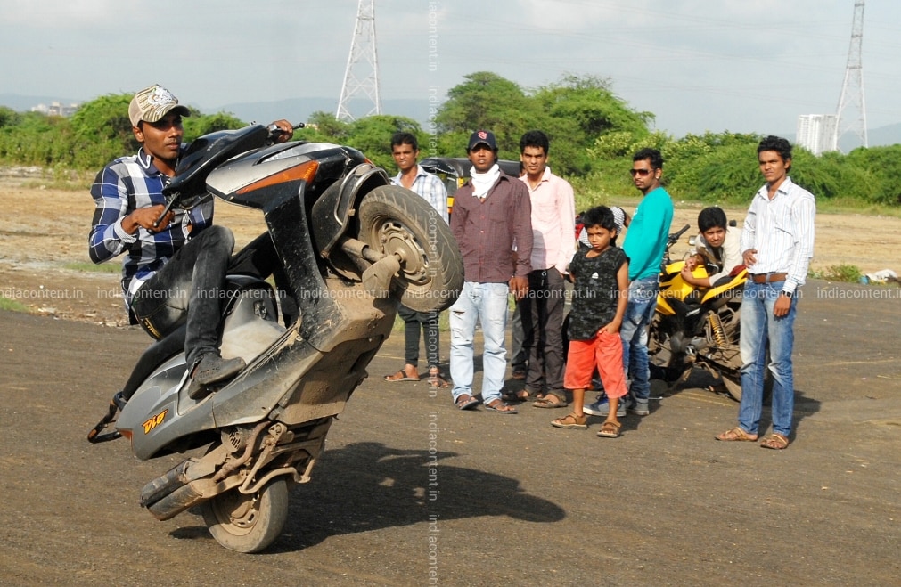 Biker in indulge in street stunts in Mumbai Maharshtra Performance Motorbikes Motorcycle Lifestyle