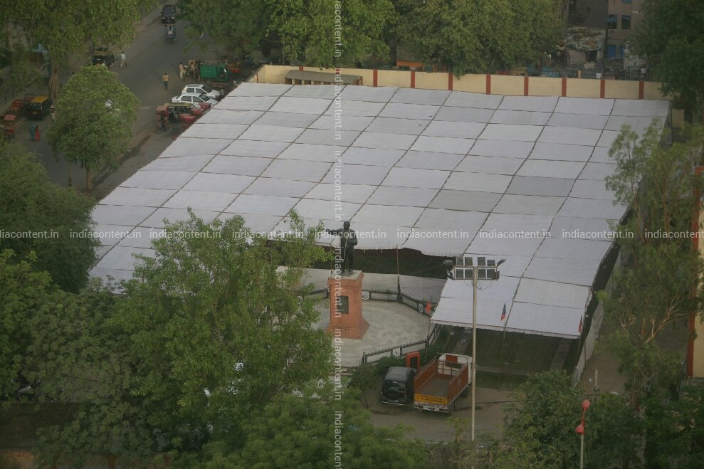 NEW DELHI INDIA APRIL 20 Preparations IN FULL swing FOR the mass BJP rally AGAINST price rise IN NEW Delhi ON April 20 2010. Photo BY Qamar Sibtain India Today GROUP