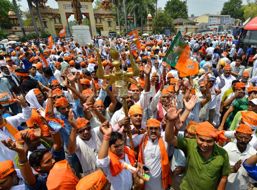 VARANASI INDIA MAY 08 BJP activists protested IN Varanasi AGAINST the Election Commissions initial curbs ON rallies BY its prime ministerial candidate Narendra Modi.Photo BY Pankaj Nangia India Today GROUP