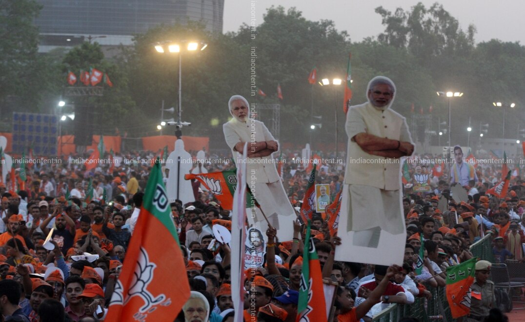 NEW DELHI INDIA MAY 08 BJP Supporters clicked during an Election Rally for the Lok Sabha Polls at Ramlila Maidan New Delhi. Photo by Qamar Sibtain India Today Group