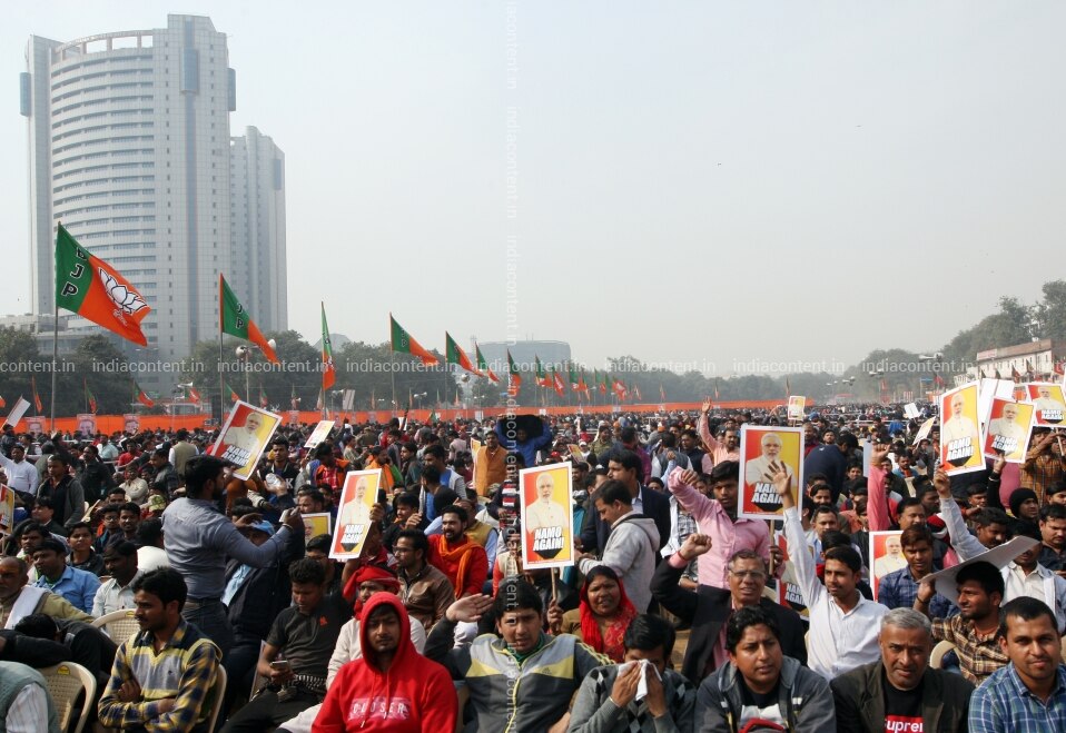 NEW DELHI INDIA JANUARY 20 BJP supporters raise slogans as they participate in BJP Yuva Vijay Sankalp Rally at Ramlila ground in New Delhi. Photo by Qamar Sibtain India Today Group