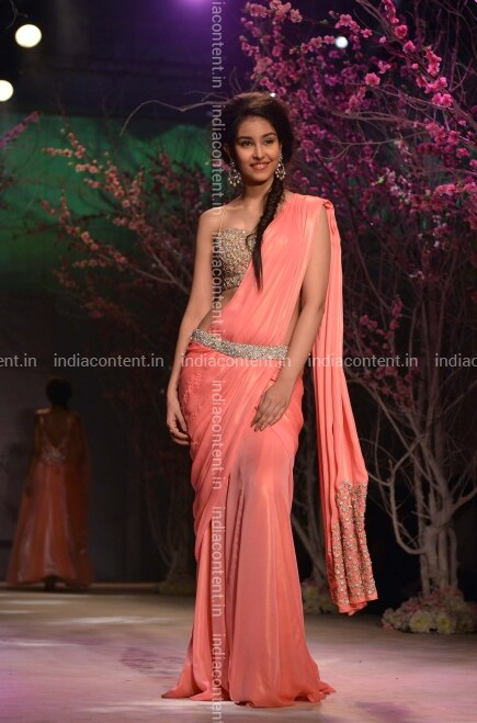 NEW DELHI INDIA AUGUST 10 A model walks the ramp FOR designer Jyotsna Tiwari AT the BMW Indian Bridal Fashion WEEK 2014.Photo BY K Asif India Today GROUP
