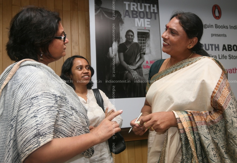 NEW DELHI INDIA AUGUST 12 Author Namita Gokhale left congratulates A Revathi at the release of the book The Truth about Me by author A Revathi. Photo by K Asif India Today Group Namita GokhaleA Revathi