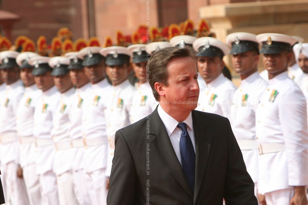 NEW DELHI INDIA JULY 29 British Prime Minister David Cameron reviews the guard of honour during his ceremonial reception at the Rashtrapati Bhavan in New Delhi on July 29 2010. Photo by Naveen Jora India Today Group David Cameron