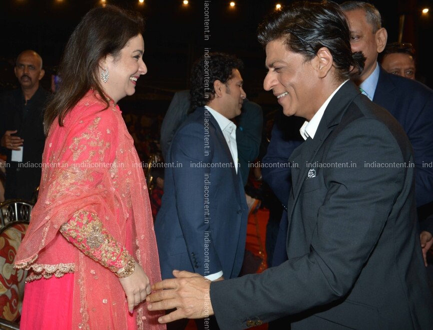 MUMBAI MAHARASHTRA JANUARY 10 Shahrukh Khan AND Anjali Tendulkar IN Mumbai police SHOW UMANG AT Andheri sports complex.Photo BY Milind Shelte India Today GROUP Shahrukh KhanAnjali Tendulkar
