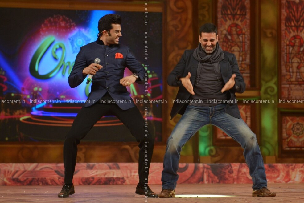 MUMBAI MAHARASHTRA JANUARY 10 Akshay Kumar AND Manish Paul performing IN Mumbai police SHOW UMANG AT Andheri sports complex.Photo BY Milind Shelte India Today GROUP Akshay KumarManish Paul