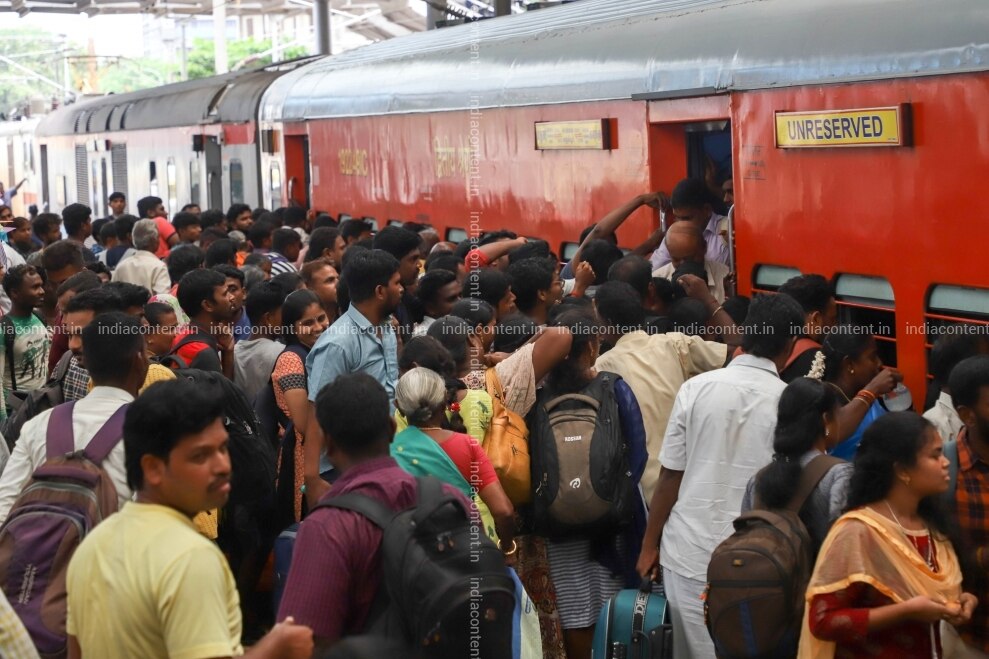 Buy Chennai A rush of passengers seen at Chennai Egmore railway station as people leave for their hometowns to celebrate Diwali on Oct 25 2019 Photo IANS Pictures, Images, Photos By IANS - Others pictures