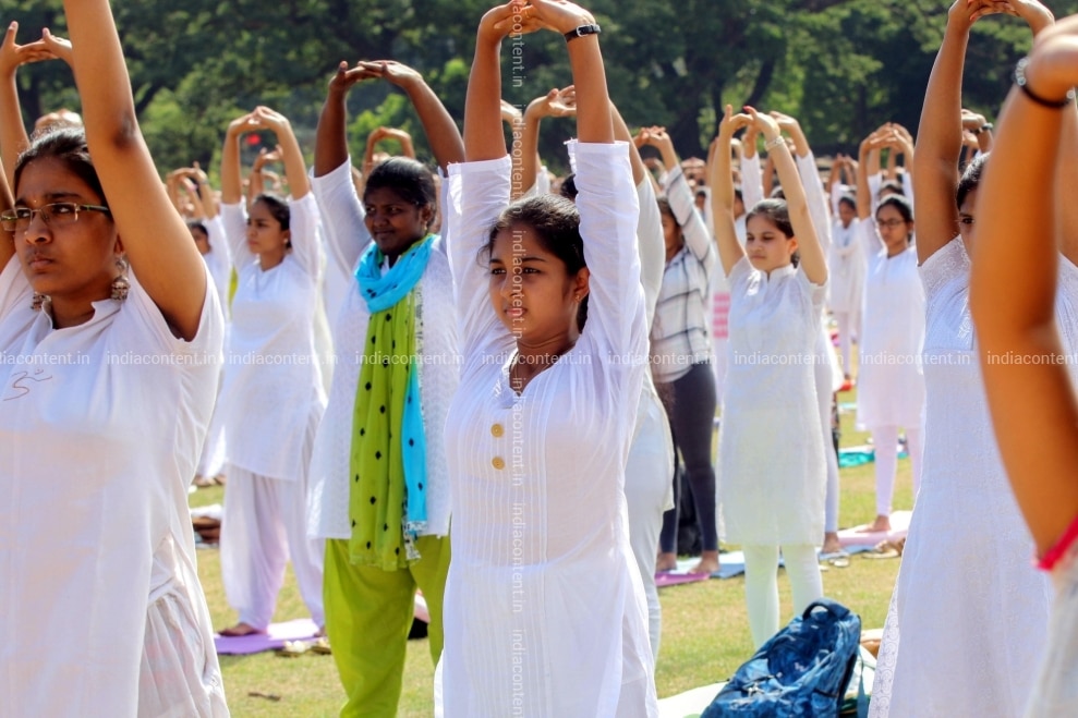 Chennai People practice yoga 'asanas' postures on Fourth International Yoga Day in Chennai on June 21 2018. Photo IANS