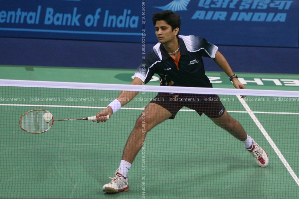 NEW DELHI INDIA OCTOBER 4 Indias Chetan Anand in action during his badminton qualifier round at Commonwealth Games in New Delhi on Monday October 4 2010. Photo by Qamar Sibtain India Today Group Chetan Anand