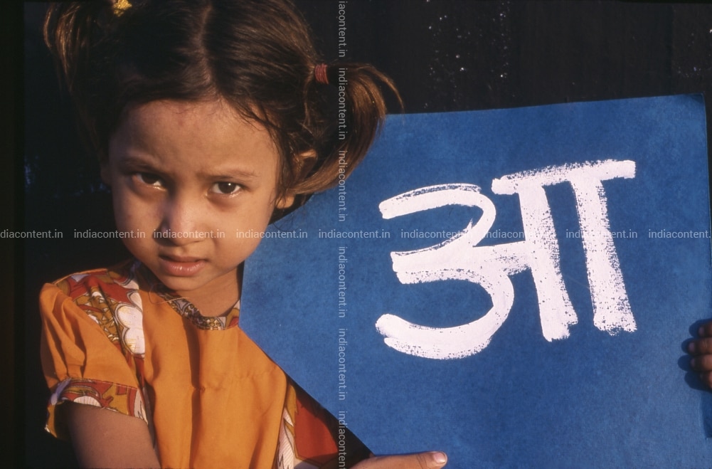 Buy CHILD HOLDING HINDI ALPHABET SHEET Pictures, Images, Photos By Sharad Saxena - Archival pictures