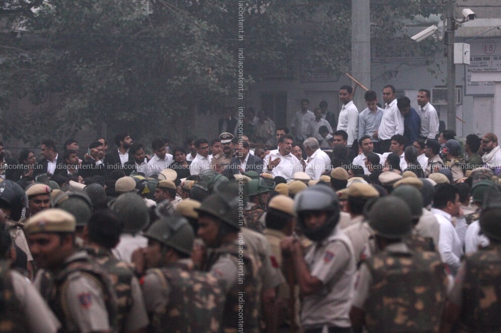 NEW DELHI INDIA NOVEMBER 02 Police and Lawyers fight over a parking lot at Tis Hazari Court in New Delhi. Photo by Qamar Sibtain India Today Group
