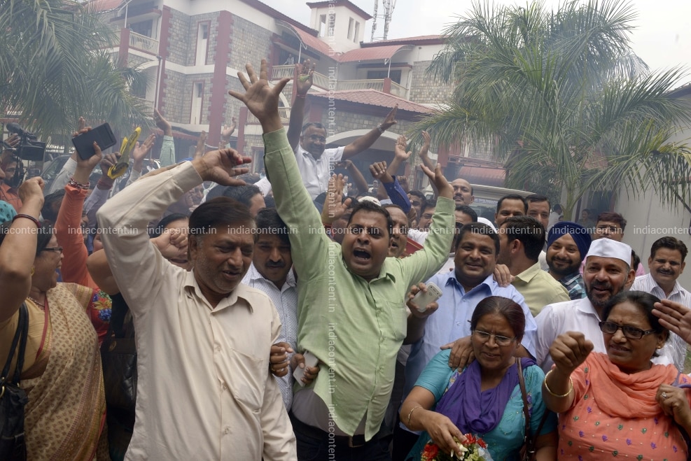 Congress workers celebrate after President's Rule was lifted from Uttarakhand on May 11, 2016 in Dehradun. Photo by Yasbant Negi
