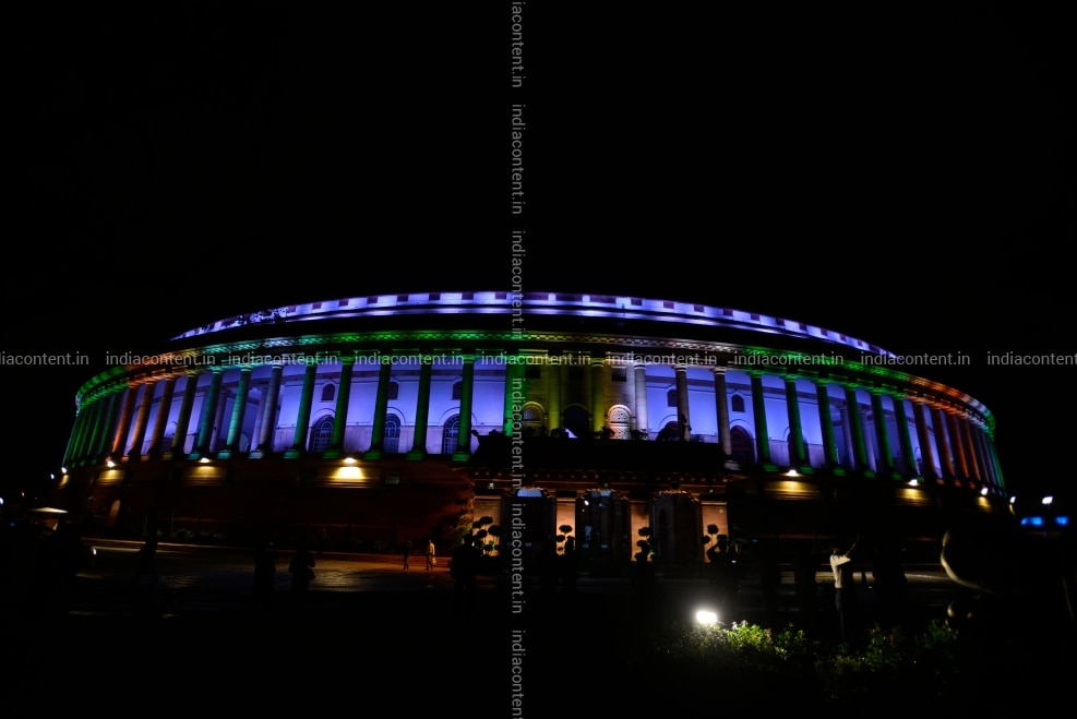 NEW DELHI INDIA AUGUST 14 Decoration of Parliament house on the occasion of Independence Day in New Delhi. Photo by Pankaj Nangia India Today Group
