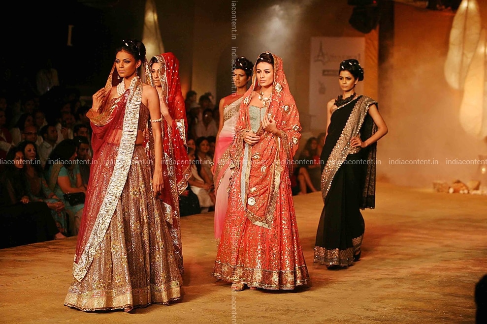 NEW DELHI INDIA - JULY 23 Models display creations of designers Meera and Muzaffar Ali at the Delhi Couture Week 2011 in New Delhi on Saturday. Photo by Ramesh SharmaIndia Today Group