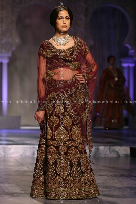 NEW DELHI INDIA - AUGUST 08 A model walks the ramp to showcase a creation by designer JJ Valaya during the Day 1 of PCJ Delhi Couture Week 2012 at The Grand Vasant Kunj New Delhi on August 08 2012. Photo by Ramesh Sharma India Today Group