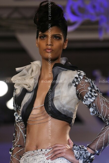 NEW DELHI INDIA - AUGUST 12 A model walks the ramp for designer Manav Gangwani during Day 5 of PCJ Delhi Couture Week 2012 at hotel Taj Palace New Delhi on August 12 2012. Photo by Ramesh Sharma India Today Group