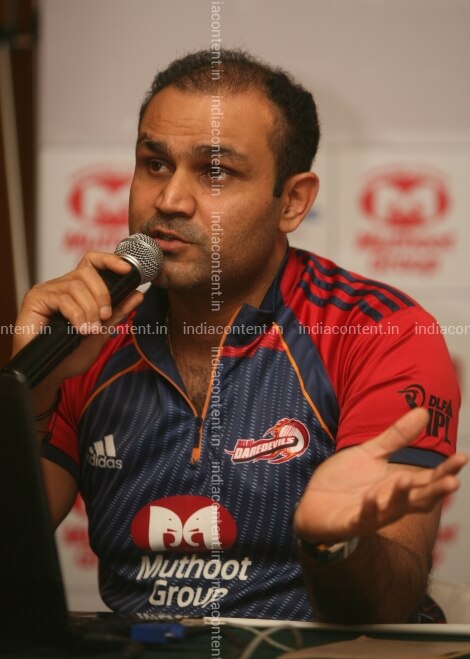 NEW DELHI INDIA - MARCH 21 Cricketer Virender Sehwag at an event to launch the revamped website of Delhi Daredevils on Wednesday in New Delhi. Photo by Parveen Negi India Today Group Virender Sehwag