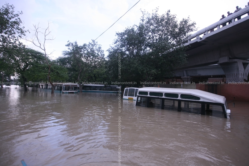 NEW DELHI INDIA SEPTEMBER 11 The rising waters of the Yamuna river at ISBT in New Delhi on September 11 2010. Photo by Jyoti Kapoor India Today Group