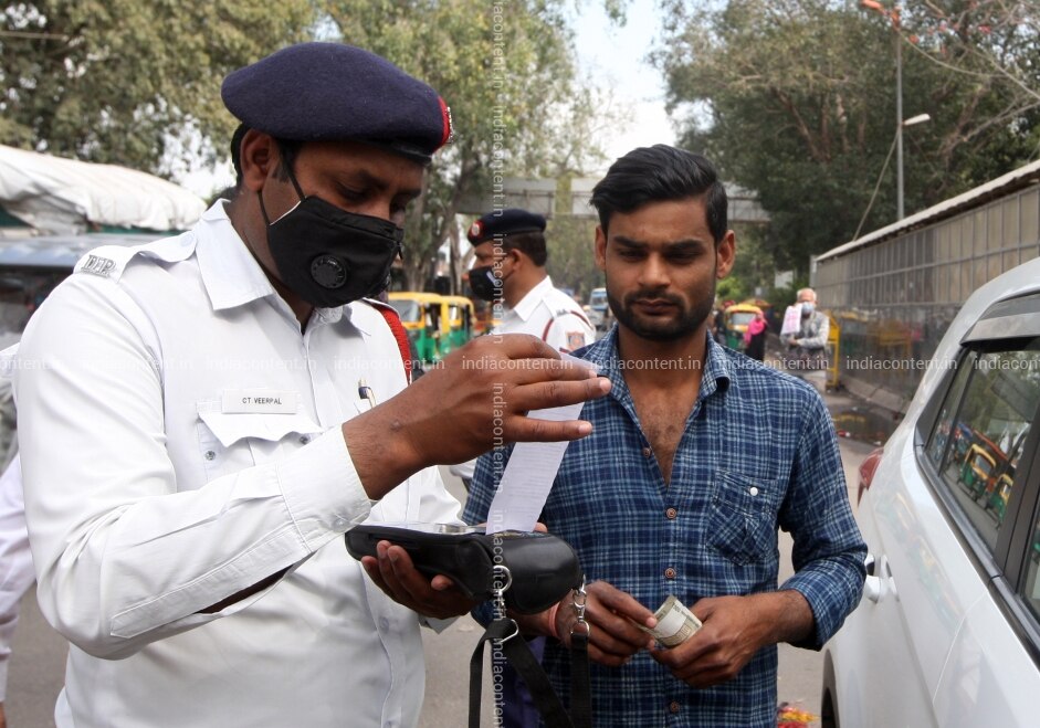 NEW DELHI INDIA MARCH 16 Delhi Traffic Police wears mask due to Coronavirus spread in New Delhi. Photo by Qamar Sibtain India Today Group