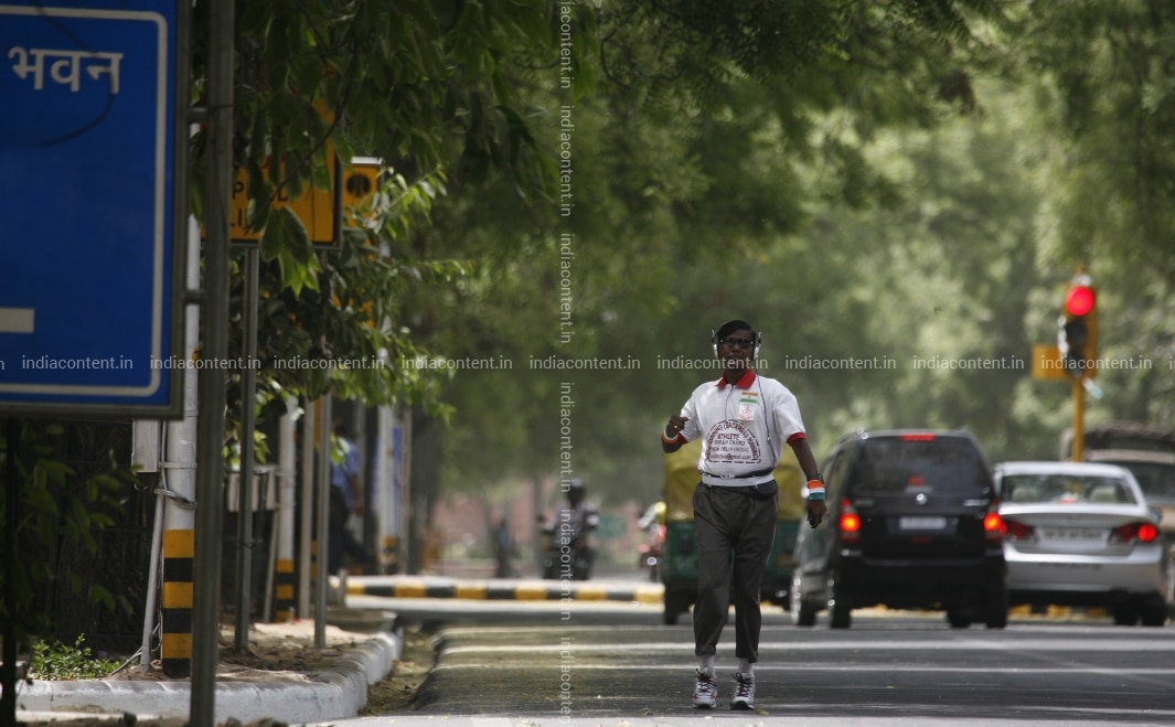 NEW DELHI INDIA APRIL 18 Puran Chand Indias FIRST retro runner practices IN NEW Delhi ON April 18 2010. Puran has completed more THAN 1500 kms running backwards. Photo BY Kaushik Roy India Today GROUP Puran Chand