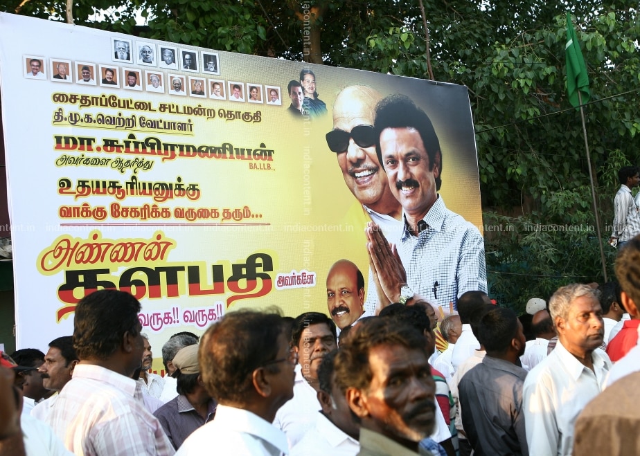 Crowd during the campaign meeting of DMK party treasurer MK Stalin at Jefferkhanpet in Chennai on Wednesday May 4 2015. Photo by Jaison G