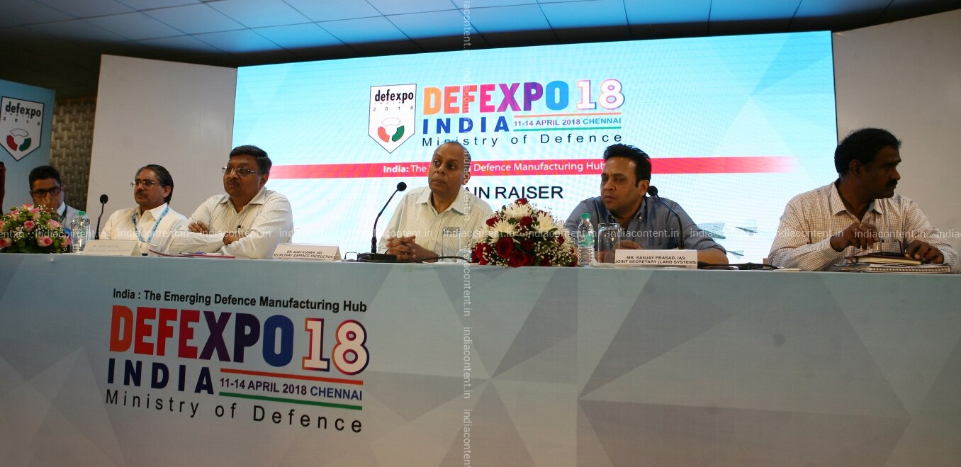 Dr. Ajay Kumar IAS secretary defence production addressing the media during the curtain raiser press meet of Defexpo 18 at the expo venue at Thiruvidanthai near Chennai on Sunday April 08 2018. Photo by Jaison G