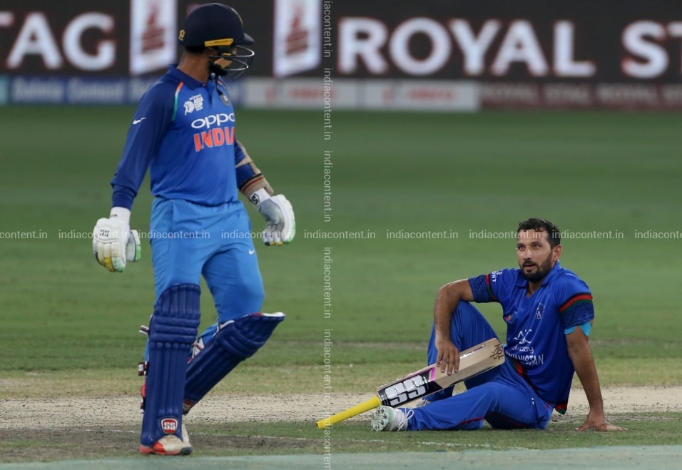 Buy Dubai Indias Dinesh Karthik and Javed Ahmadi of Afghanistan during the fifth match of Asia Cup 2018 Super Four between India and Afghanistan at Dubai International Cricket Stadium in Dubai UAE on Sept 25 2018 Photo Surjeet Yadav IANS Pictures, Images, Photos By IANS - Sports pictures