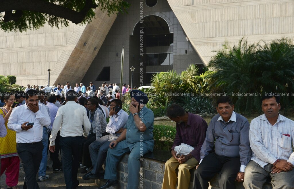 NEW DELHI INDIA OCTOBER 25 People came OUT of offices AND buildings AFTER an earthquake IN NEW Delhi. Photo BY Qamar Sibtain India Today GROUP